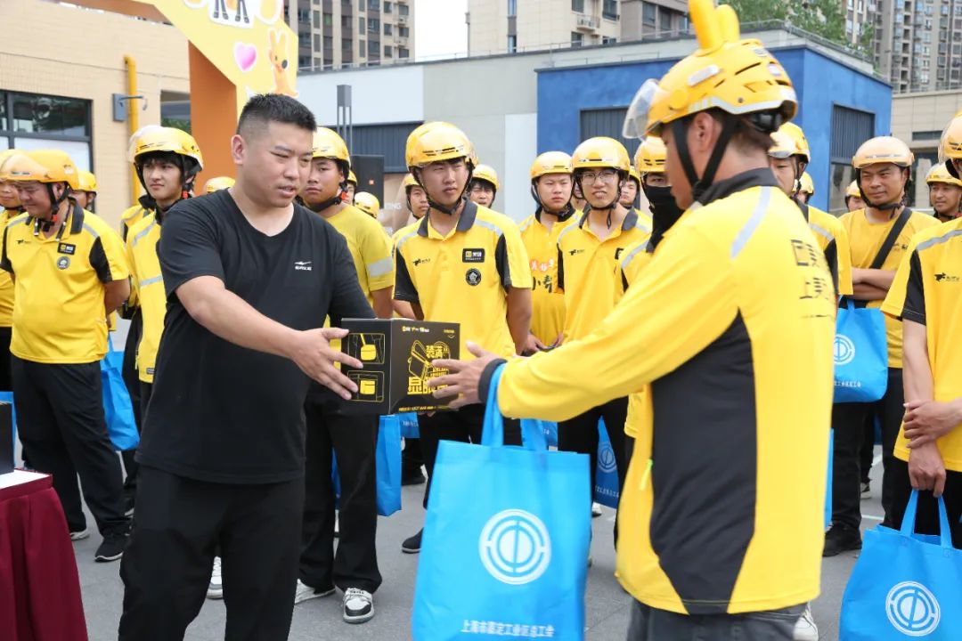 作为城市运转不可或缺的重要力量,外卖骑手们在炎热的天气下在大街小巷穿梭,保证人们的便利生活。每年7月17日是“骑士节”,今天,嘉定区总工会特意为外卖骑手们送上清凉慰问品,提醒他们注意防暑降温,做好个人防护。