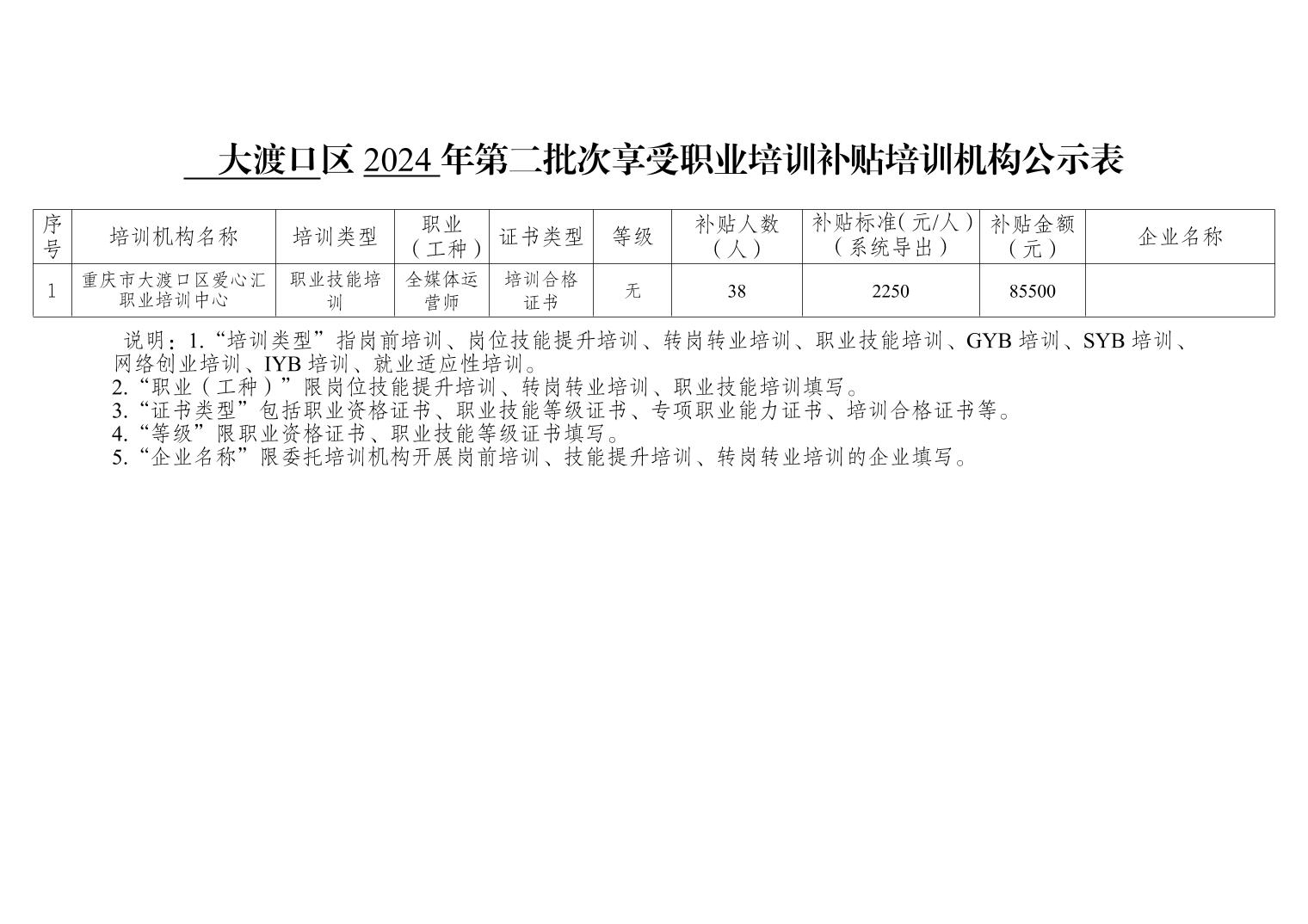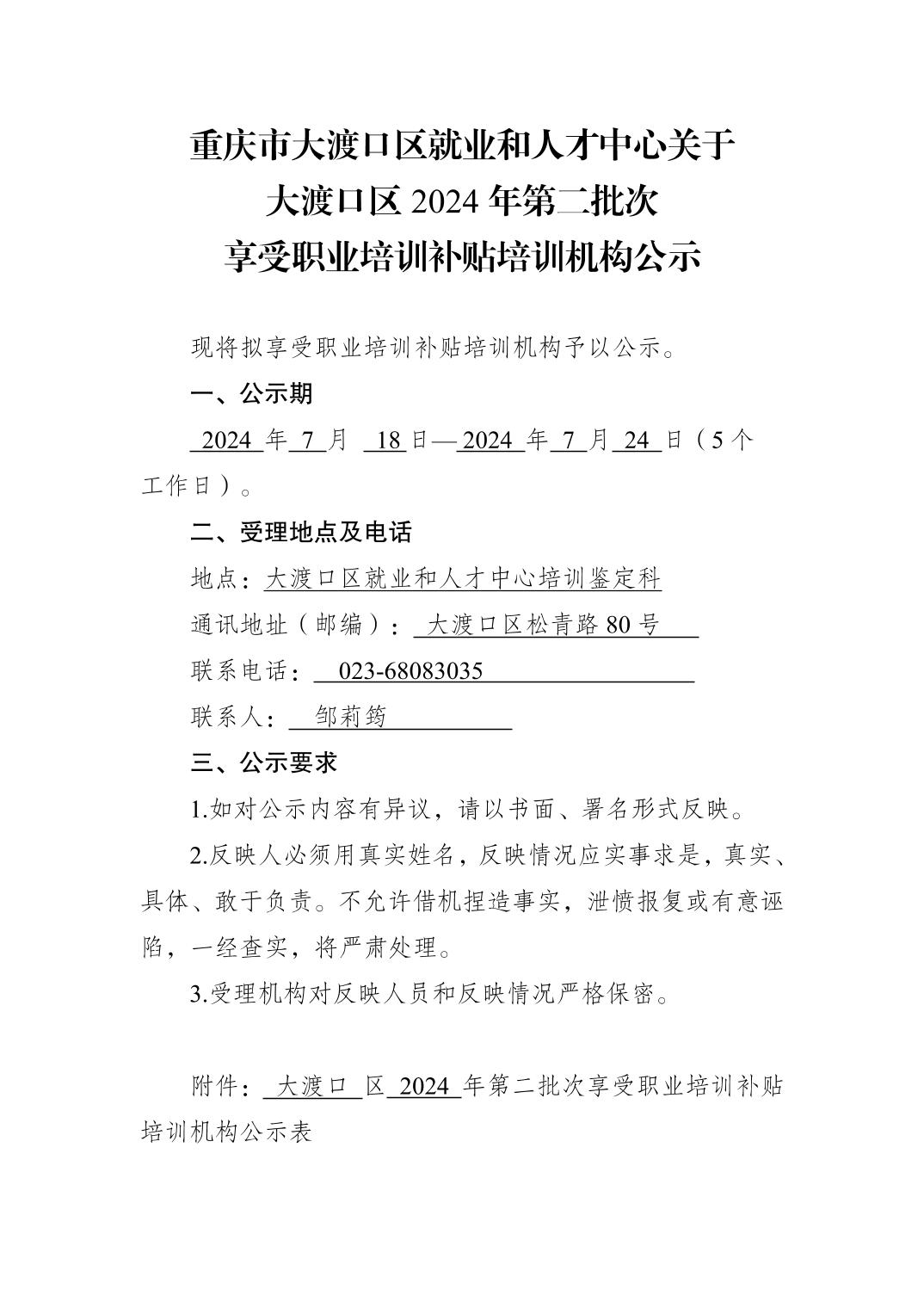 重庆市大渡口区就业和人才中心关于大渡口区2024年第二批次享受职业培训补贴培训机构公示