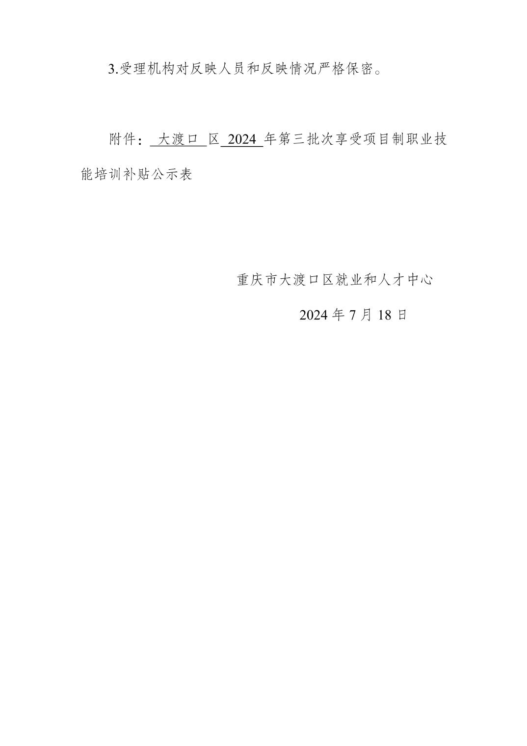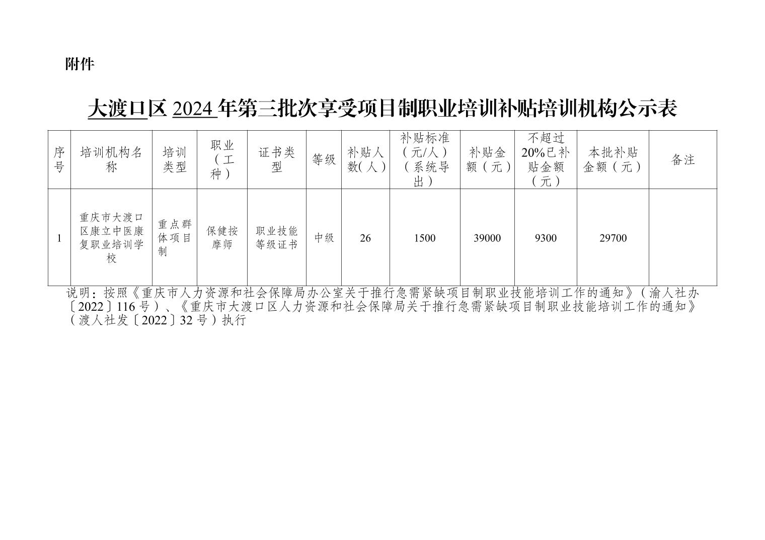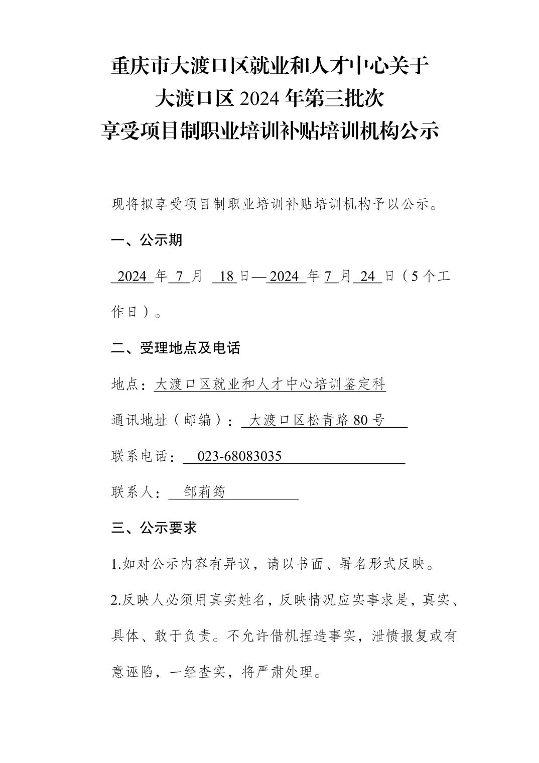 重庆市大渡口区就业和人才中心关于大渡口区2024年第三批次享受项目制职业培训补贴培训机构公示