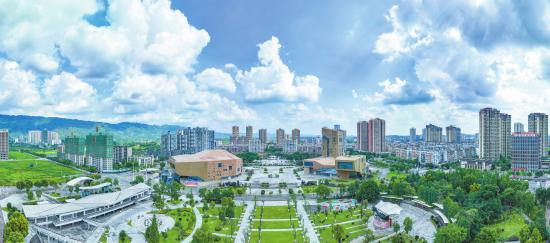 7月15日,蓝天白天下绿树成荫的经开区市民文化中心雄伟壮观。近年来,双桥经开区稳步推进新生·茶隐小镇、产业服务活力绿心、1965记忆街区等重点项目,以及改善型住房建设、邮亭互通绿化提升等工程,着力打造先进制造业新高地、产城景融合示范区,城市不断向“新”、向“绿”、向“智”。