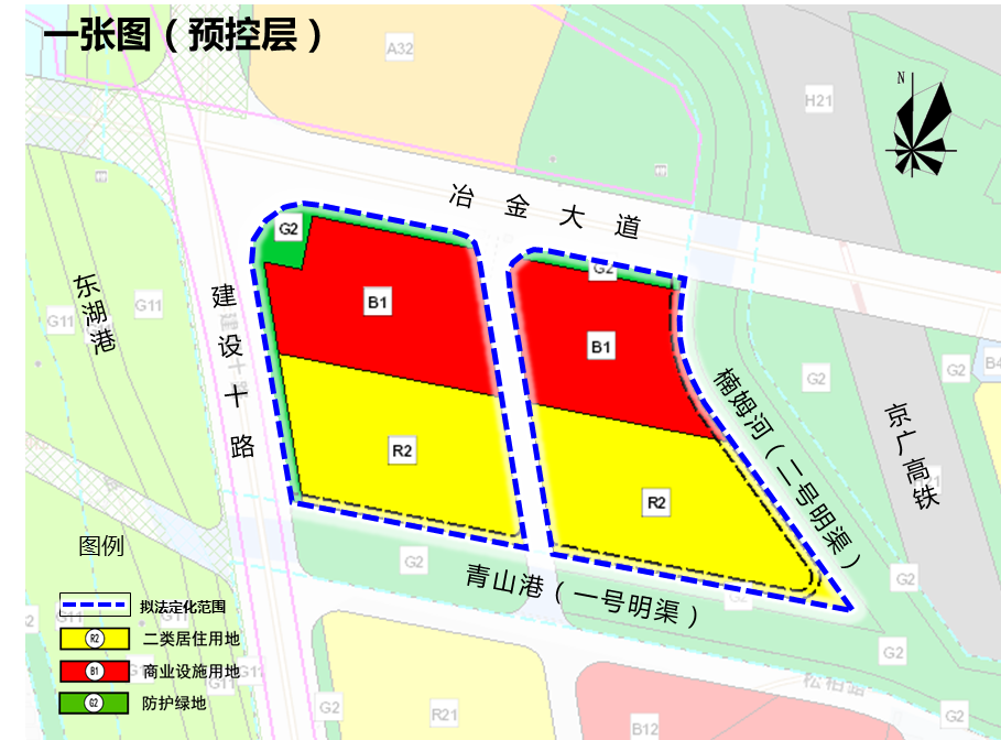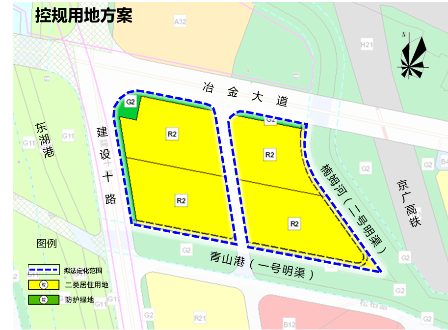 四至范围:北至冶金大道,东至楠姆河,西至建设十路,南至青山港(如图所示)。