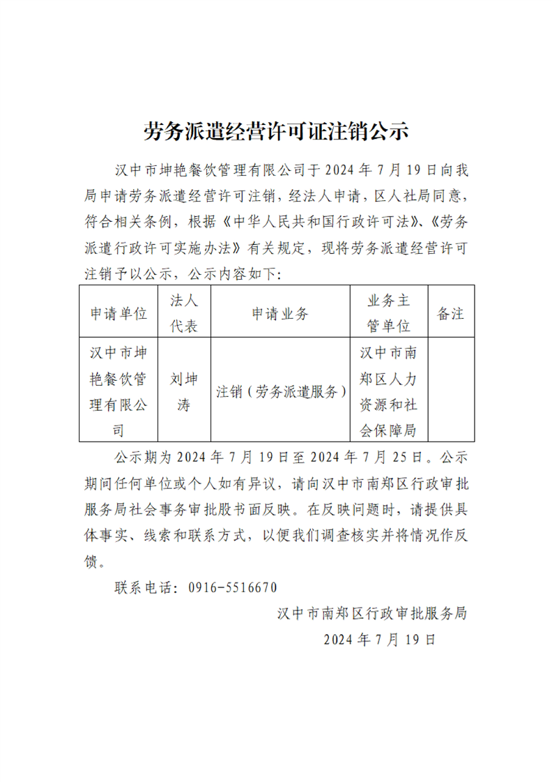 劳务派遣经营许可证注销公示