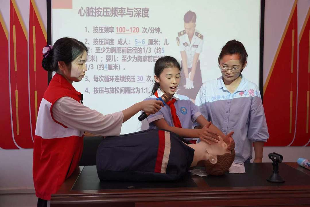 社区学生廖婧雯说:“今天我学会了防溺水心肺复苏急救知识和海姆立克急救法,掌握这些知识能在关键时刻挽救生命。”