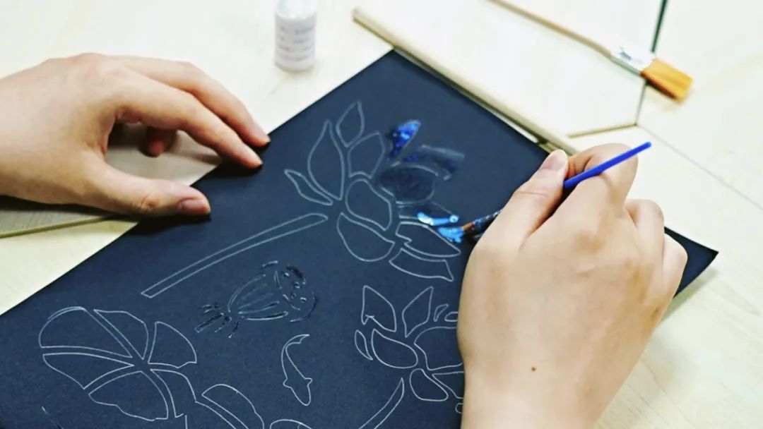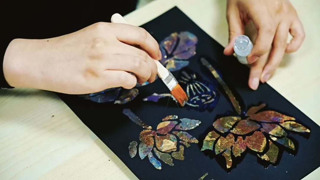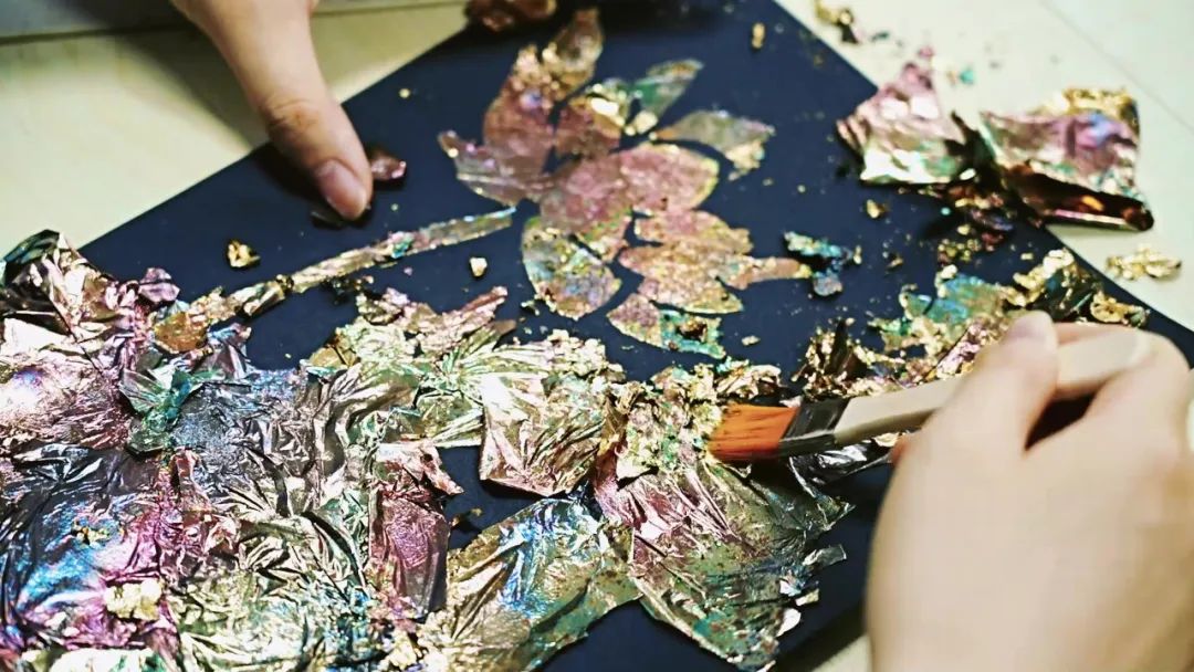 箔是一种由金属制成的薄片,厚度通常在0.02毫米以下。而烧箔是通过热处理或化学反应,使其产生原来本不具有的颜色。因其精湛的技艺和独特的艺术风格,被誉为中国金属工艺中的瑰宝之一,已被列入第二批国家级非物质文化遗产名录。今天我们就以箔为墨,来画一幅不一样的画。