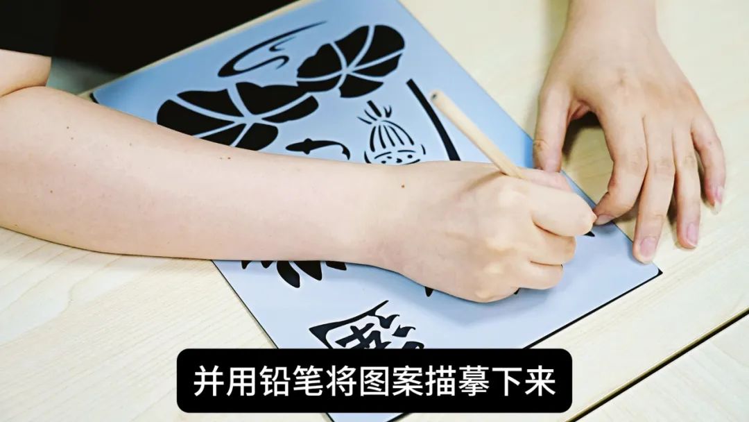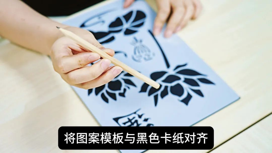 首先把想画的图案模板与黑色卡纸对齐,并用铅笔将图案描摹下来。