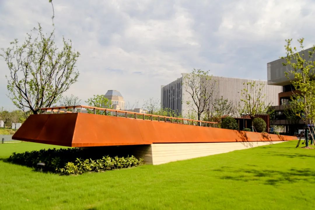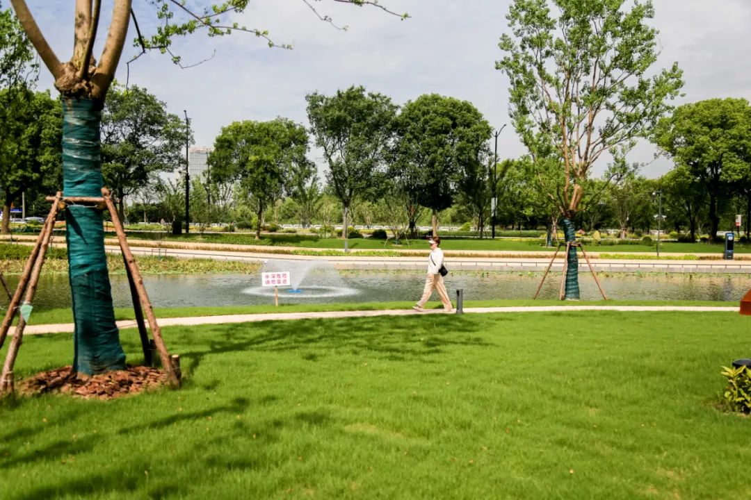 作为入城口品质提升的重要组成部分,位于区档案馆新馆西侧的绿地也在今天正式对外开放。该绿地总面积达27344.5平方米,以“大水、大绿、大效果”的设计理念,打造集休闲、观赏于一体的城市绿洲。漫步其中,碧波荡漾的湖面与郁郁葱葱的树木交相辉映,亲水步道、阶梯广场、观景挑台等设施则错落有致地分布在湖畔四周。“水美、景美、细节美,一家老小都能在这里找到乐趣!”不少市民纷纷点赞。