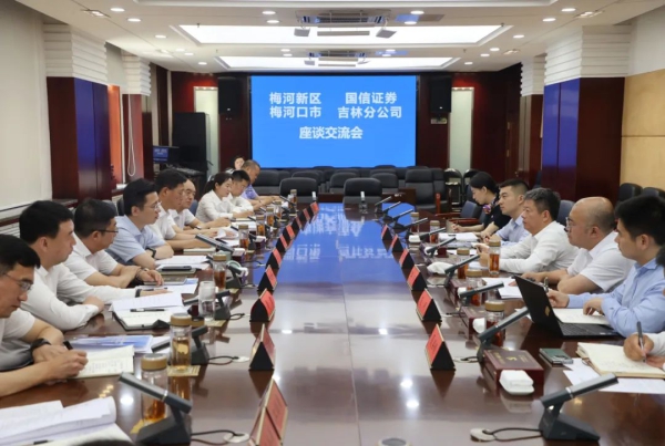 7月22日,梅河新区党工委书记、市委书记朱欢,梅河新区管委会主任、市长宋钦炜会见国信证券股份有限公司财富管理与机构事业部副总裁、浙江分公司总经理章海波和吉林分公司总经理王浩一行,围绕双方合作发展进行座谈交流。