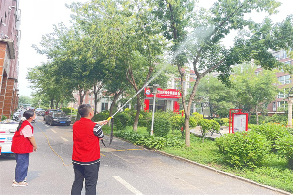 在消杀过程中,社区和物业依据虫害摸排情况,兼顾美国白蛾生物特性,统筹防治作业,对辖区绿化带等重点区域进行药物喷洒,确保药防作业全覆盖。