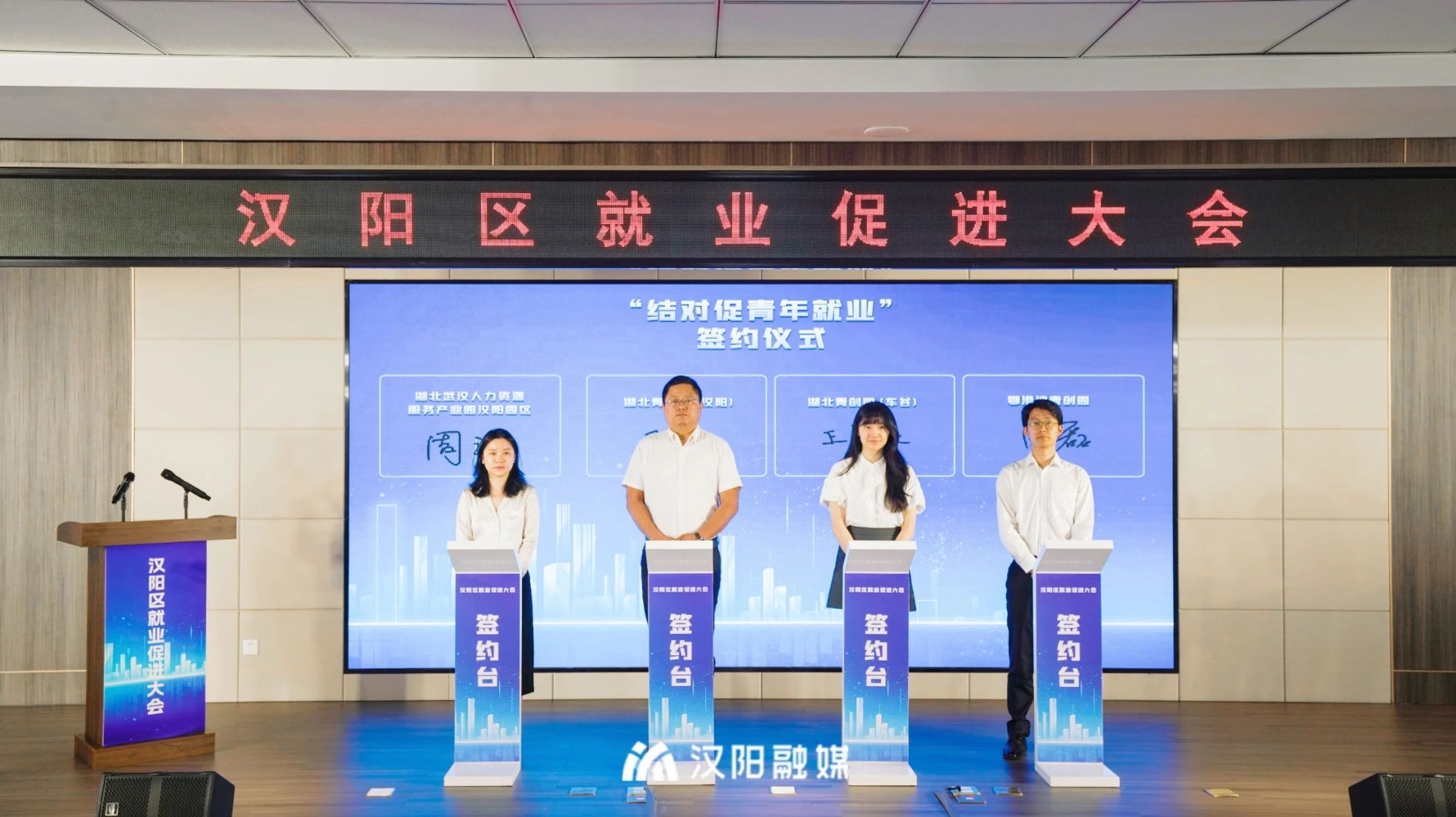 汉阳区就业促进大会现场,“结对促进青年就业”合作签约。