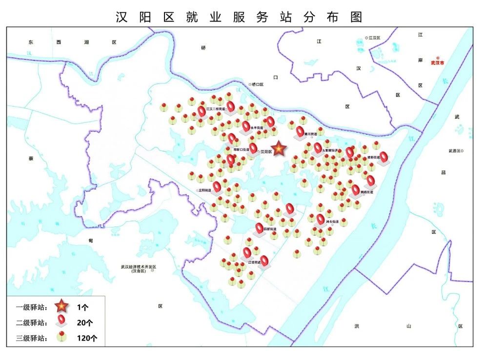 汉阳区“家门口”就业服务站点位分布图。