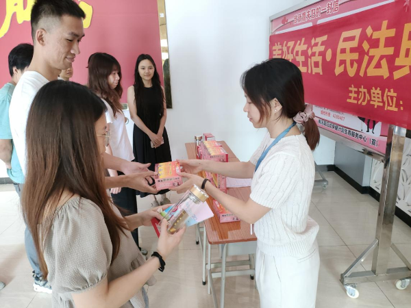 为进一步增强群众法律意识,积极倡导平等、和睦、文明的婚姻家庭关系,加深广大群众对《中华人民共和国民法典》婚姻家庭篇的相关法律知识,提高依法维权能力,2024年7月22日上午,佛冈县民政局婚姻登记处开展以“美好生活 民法典相伴”宣传活动。