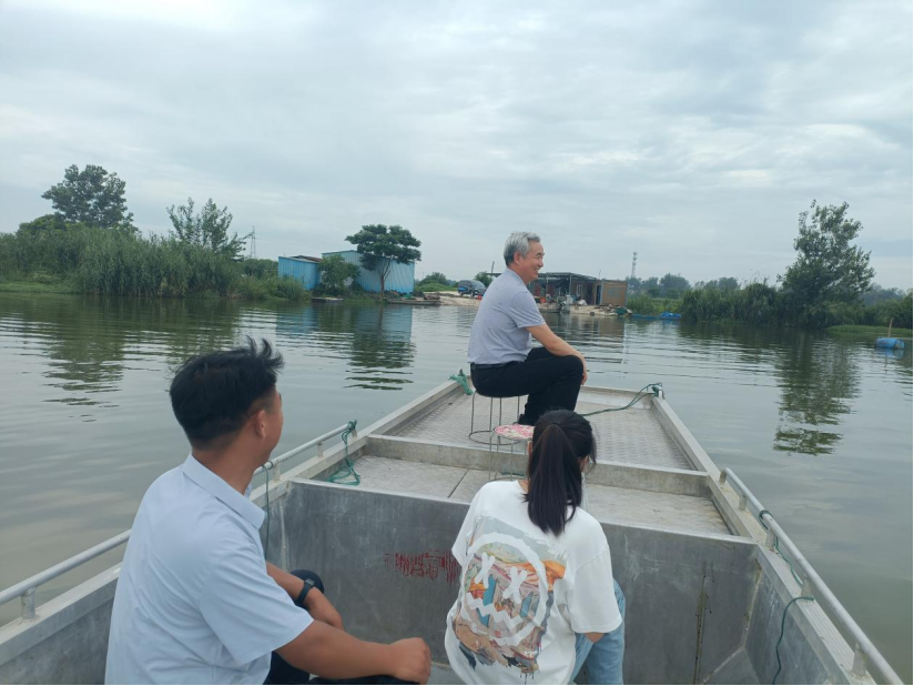 甘怀海一行首先来到刘集镇夹河村村委会,与夹河村第一书记徐新傲深入交流,详细了解包保河段管理的实际情况,仔细询问存在的问题,积极探讨解决办法。随后,甘怀海一行来到张家湖码头,踏上管理船进行巡河,仔细观察近期雨水多发态势下河流水情,查看湖中水质有无异常,河道两岸有无暴露垃圾、堆放杂物,湖中有无水产养殖等状况,检查发现湖面水质清澈、湖岸无异常情况,属地巡河人员坚守岗位,正常开展巡河工作。