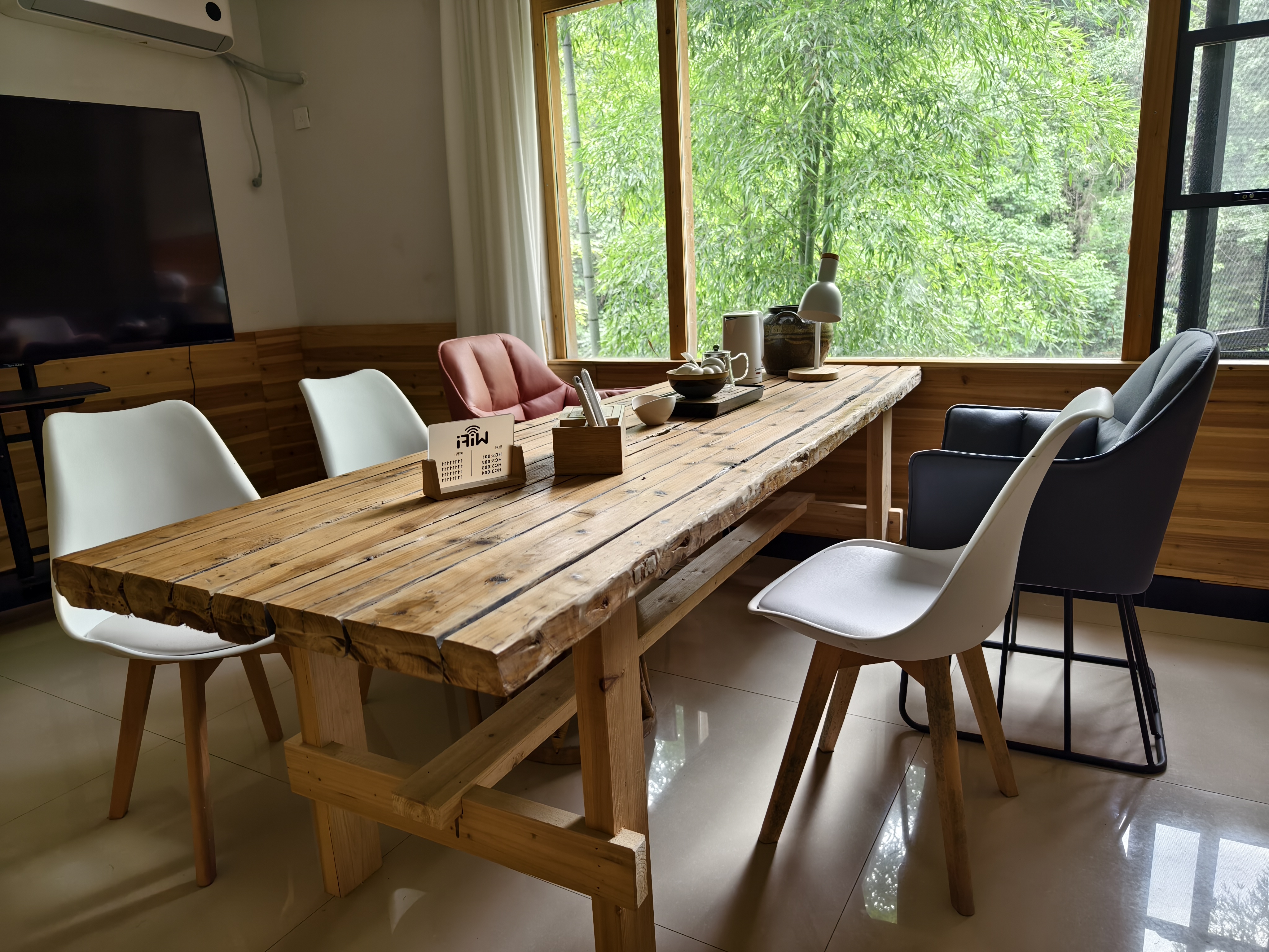 民宿的主人是艺术家汪建中,祖籍歙县,在北京长大,毕业于中央美院。2018年,他怀着乡愁来到黄山,想寻一处幽静的乡村隐居,机缘巧合来到了这个僻静的小山村,这里有山有水有茂林修竹,优美的自然环境一下子击中他的心,这不就是自己想要寻找的“世外桃源”吗?“我是学美术的,我相信自己的审美。”汪建中笑着说道。