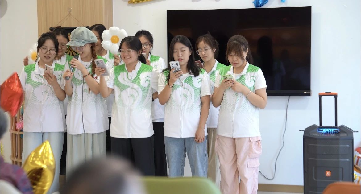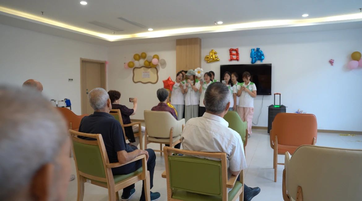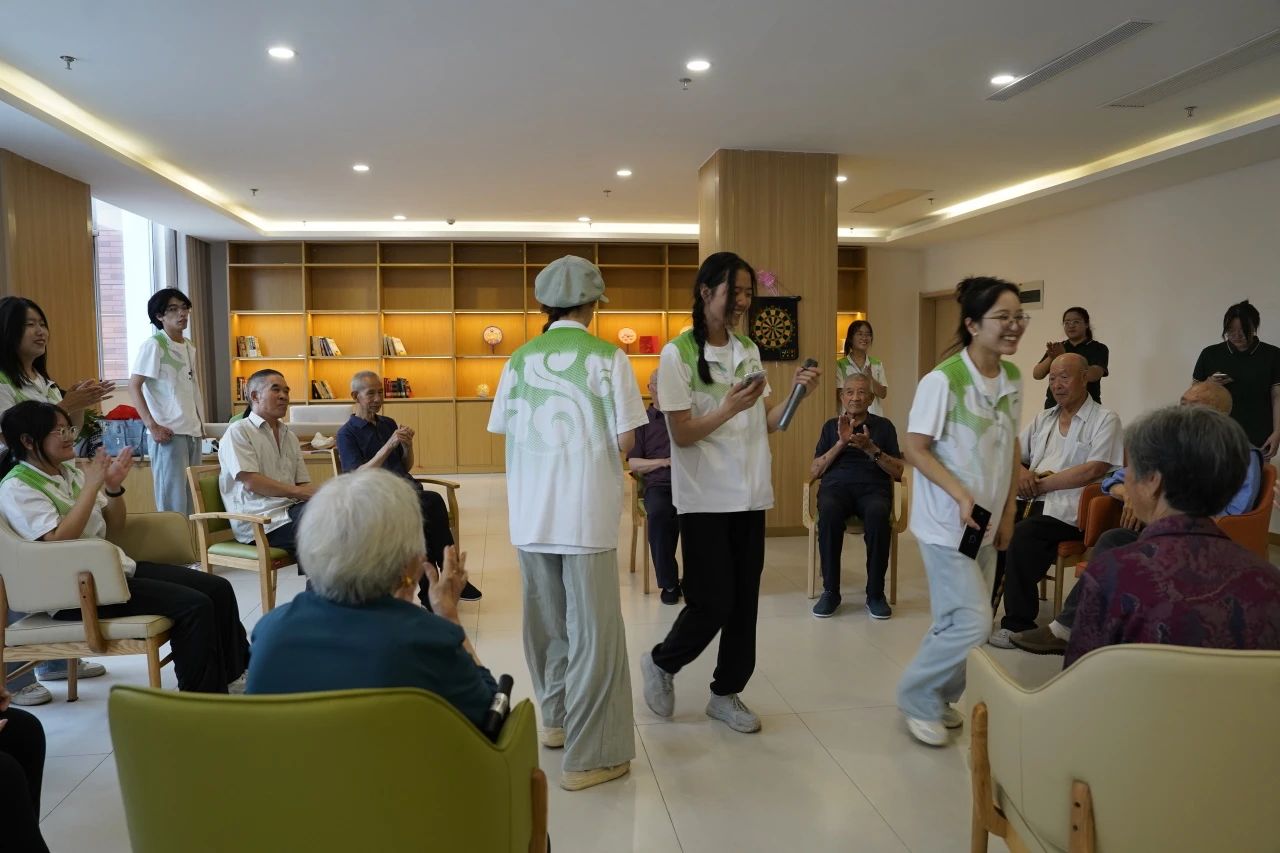 志愿者为爷爷奶奶们准备了精彩的节目。首先,志愿者集体表演了一首歌曲,调动了现场的快乐氛围,爷爷奶奶们也随着动听的旋律轻轻摇摆,露出了喜悦的笑容。