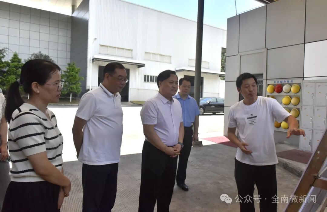 7月21日,省科技厅党组成员、副厅长陈金桥一行前往全南县调研科技创新工作,实地走访科技型代表企业——松岩新能源材料(全南)有限公司,详细了解企业技术研发、关键技术攻关、科技成果转化及产业化进展。市科技局党组书记、局长郭澜,市科技局副局长陈浩华,县委常委、统战部部长彭智军,县政协副主席、县科工局局长张晓贞等陪同调研。