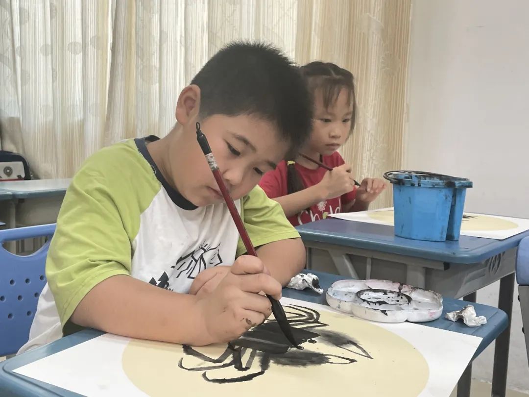 小学生化身“小画家”,国画课上“蟹”逅夏天