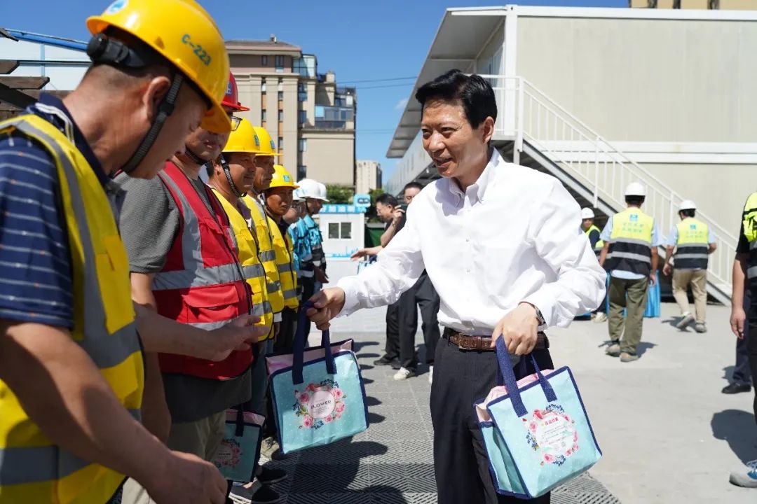 随后,陆方舟来到上海轨道交通市域线嘉闵线工程建设项目部,该项目部主要负责轨交嘉闵线嘉戬公路站、新成路站的主体建设任务。陆方舟听取建设情况介绍,询问工程施工进度,察看工人生活区域和一站式服务中心,并看望一线工人,为大家送上防暑降温用品。陆方舟表示,嘉闵线是嘉定区重大交通工程之一,近期大家冒着高温酷暑坚守岗位,为项目顺利推进作出了贡献,十分辛苦、很不容易,向大家的辛苦付出表示感谢,同时也希望所有一线工人注意劳逸结合,保重身体。陆方舟还叮嘱相关负责人,要切实把各项防暑降温措施保障到位、落实到位,确保工程安全有序推进。