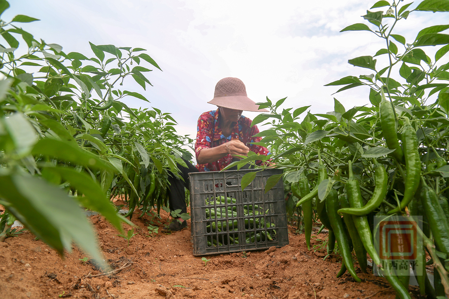 为发展壮大村集体经济,自去年以来,金章背村采取“公司+合作社+农户”的经营方式,成立了金丰源种养专业合作社,流转了60余亩土地,规模化种植辣椒,打造“一村一品”产业,带动村民在家门口稳定增收。