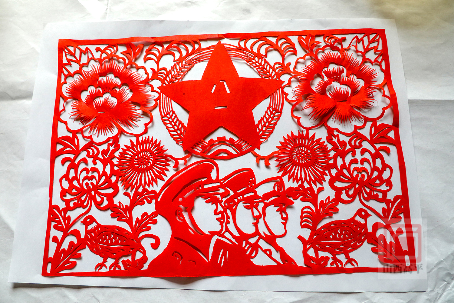 为庆祝中国人民解放军建军97周年,近日,我市非遗剪纸传承人罗继兰以“八一”之名,创作剪纸作品,通过“绘”军魂、“剪”军姿,表达对解放军战士的节日祝福,抒发家国情怀,祝愿我们伟大的祖国繁荣昌盛。