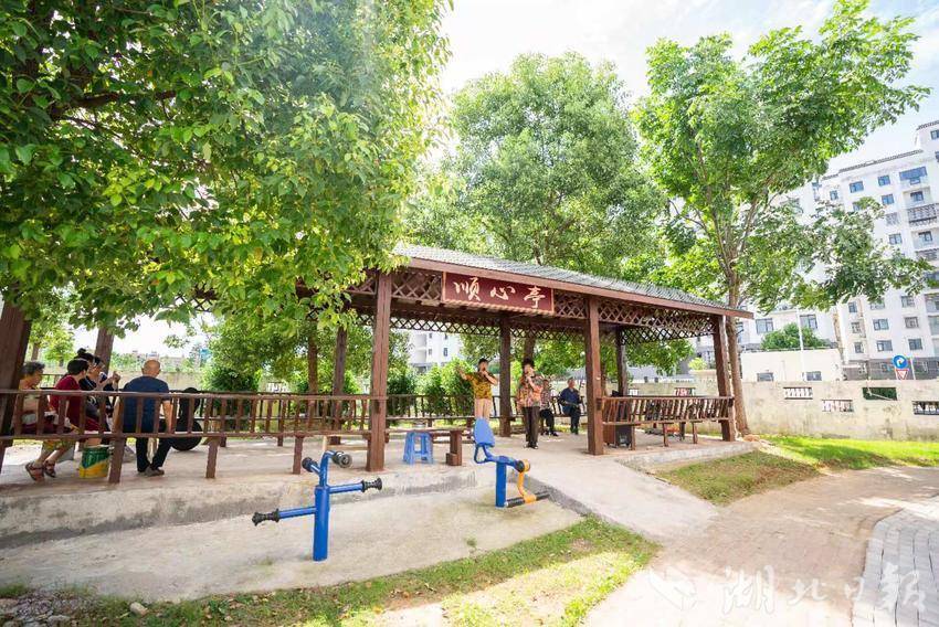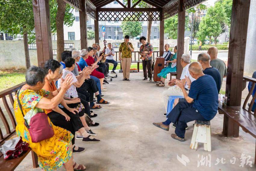 2024年7月17日,在武汉市东西湖区柏泉街新苑社区和顺园小区的顺心亭下,票友们正聚在一起排练,不少居民一边乘凉一边欣赏戏曲。据介绍,顺心亭建在一片树荫空地上,长约十米,高约三米,造型别致。在这个亭子里,不仅可以参与学习活动,还可以互相交流、分享心得。整个凉亭是由60户居民共同募捐联合社区和共建单位共同建造而成,从设计、建设到最后取名都是由居民们共同商量。同时,居民还自发成立清扫志愿服务队,定期对休闲亭进行清扫。随后还要一起布置休闲亭内景,打造邻里共同的“小家园”。