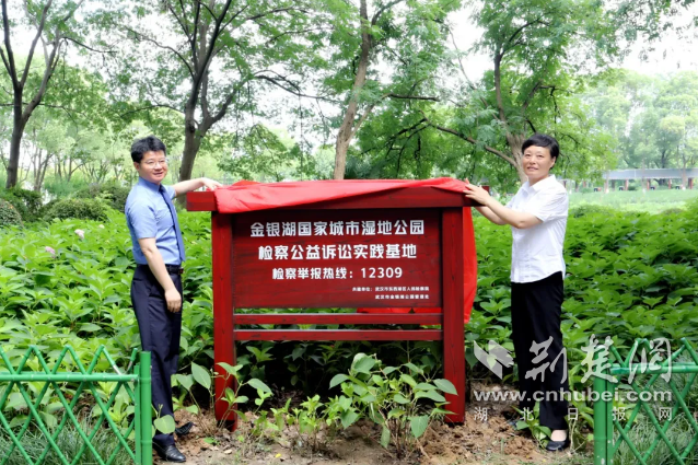 荆楚网(湖北日报网)讯(通讯员周青、丁蕊)7月17日上午,东西湖区检察院党组书记、检察长周罡与区人大监司委主任委员张铭玉共同为金银湖国家城市湿地公园检察公益诉讼实践基地揭牌。