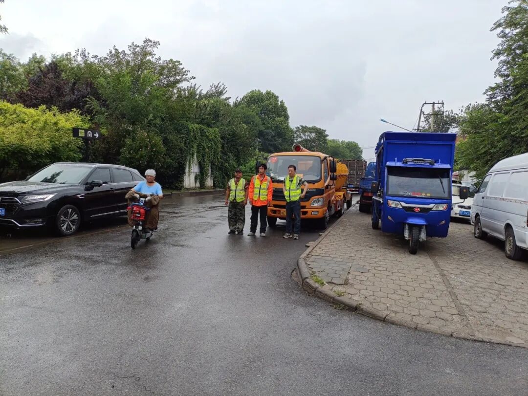 各部门、各街道社区共投入人员近900人次,车辆70余辆,对各项防汛排涝措施再检视、再细化、再落实。对7条河道、9处下沉地道、3处危险房屋、67户住人地下室、54处建筑工地、13个地下商业设施、14处易积水点位等重点部位开展巡查,确保各项措施落实到位。在低洼点位、下沉地道等重点部位提前预置人员队伍、排水设备、硬隔离设施,做好人员物资储备。