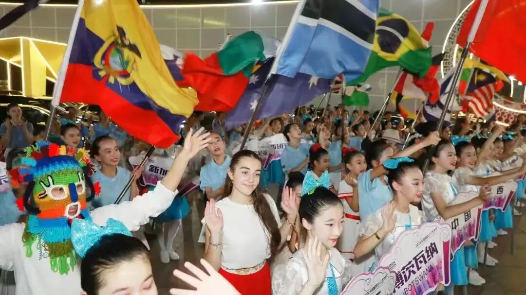 这是一场充满欢乐的盛会,不同肤色、不同语言的孩子们共同绽放笑容,他们带着各自独特的文化和才艺,在这里一展风采。在天津万象城,一场别开生面的中外活力快闪表演燃爆全场。天津市华夏未来少儿艺术团带来中国歌曲串烧,生动展现了天津少年儿童的蓬勃朝气。坦桑尼亚泉门学校的同学们带来了极具特色的坦桑尼亚舞蹈表演,中国澳门培正中学艺术团献上动感欢快的街舞表演,现场掌声、欢笑声不断。