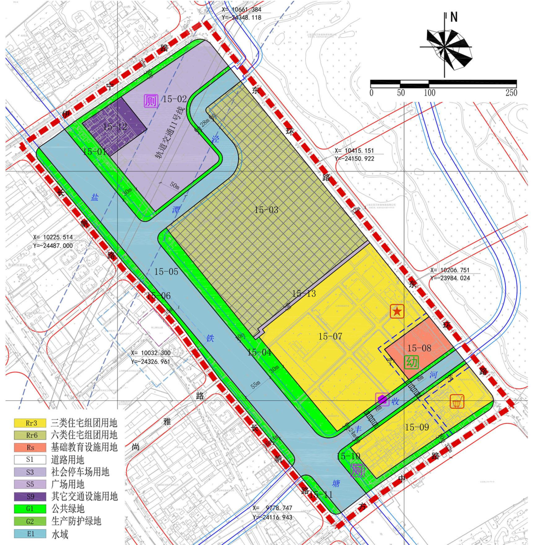 1.土地使用:15-02地块用地性质由城市发展备建用地(X)调整为社会停车场用地(S3),用地面积不变,并在地块内配套提供1处建筑面积为650平方米的管理用房(含1处公共厕所);15-09地块电商住混合用地(Rr3C2)调整为三类住宅组团用地(Rr3),用地面积不变,同时取消地块内配套的150个公共停车位;规划新增15-13地块为广场用地(S5),作为15-03、15-07地块间的公共通道空间。此外,结合情况和河道蓝线,对15-03、15-04、15-05、15-06、15-07、15-11地块的边界进行微调。