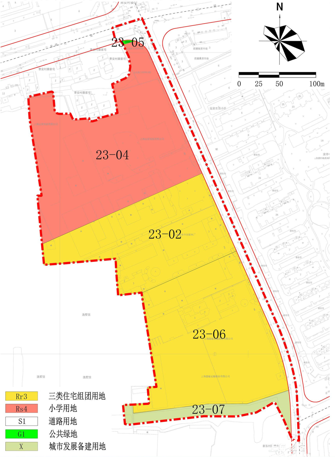 1.土地使用:将23-02地块用地性质由初级中学用地(Rs3)调整为三类住宅组团用地(Rr3);将23-03地块拆分成23-06、23-07两个地块,其中23-06地块由备用地(X)调整为三类住宅组团用地(Rr3),23-07地块保持备用地(X)不变;将23-01地块拆分成23-04、23-05两个地块,其中23-04地块保持小学用地(Rs4)不变,23-05地块为昌吉路绿化带公共绿地(G1)宽5米。同时结合权籍和镇界,对23-02、23-04、23-05地块的边界进行微调。
