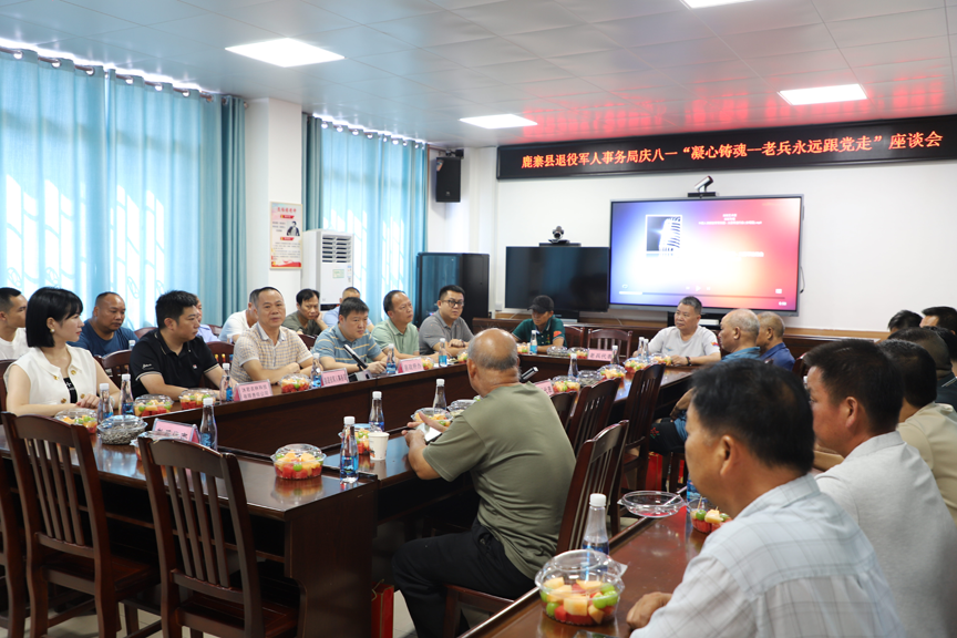 为热烈庆祝中国人民解放军建军97周年,大力弘扬我党我军的优良传统,7 月 25 日上午,鹿寨县退役军人事务局联合鹿寨县沐君农林科技有限责任公司,召开庆八一“凝心铸魂——老兵永远跟党走”座谈会。各个时期的退役老兵代表 ,以及功臣模范“最美退役军人”、一等功臣共37人参加会议。