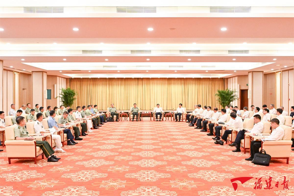 驻闽部队领导向关心支持部队建设的福建各级党委、政府和广大人民群众表示感谢,对福建经济社会发展取得的成绩表示祝贺,并简要介绍了部队情况。大家表示,驻闽部队广大官兵坚决贯彻习近平强军思想,深入学习贯彻党的二十届三中全会精神,与福建共同弘扬双拥光荣传统,全力以赴支持新福建建设,军民同心、携手向前。