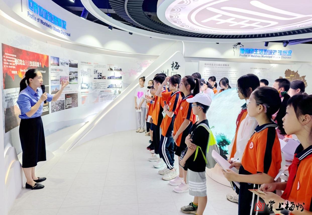在梅州市三峰环保能源有限公司,同学们跟随讲解员参观垃圾焚烧发电流程,认真学习资源回收利用知识等,进一步提高生态环保意识。在垃圾抓吊车间,工作人员熟练地操纵大型垃圾抓斗,将存放在池内的垃圾送至焚烧炉内焚烧发电,点燃了学生们的好奇心和求知欲,“大爪子一次性可以抓起几吨垃圾”“垃圾焚烧产生的废渣都去哪儿了”……面对大家提出的疑问,讲解员一一进行解答。