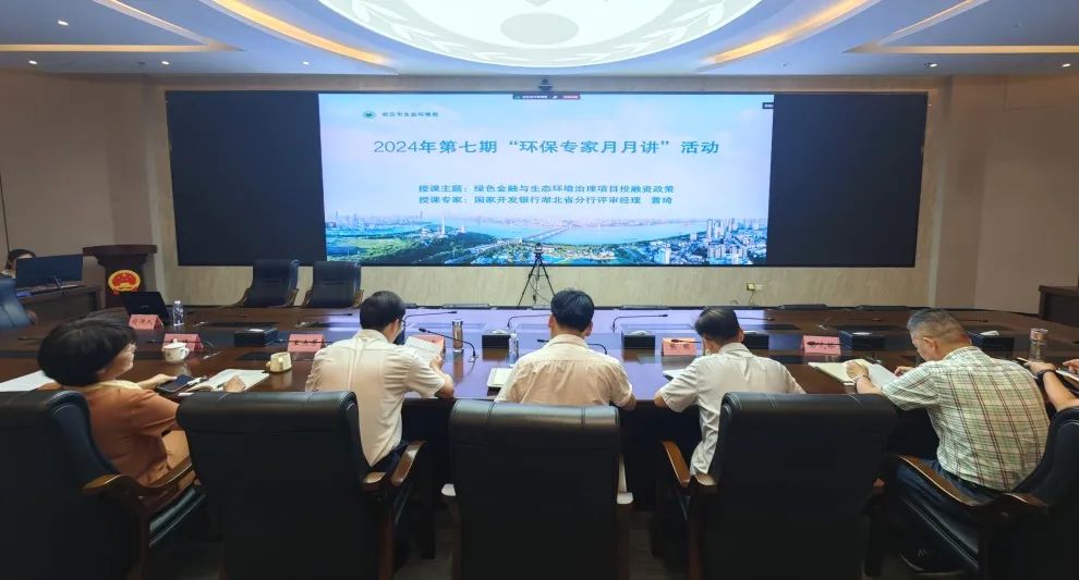 为进一步加深对构建绿色金融体系的理解,推动绿色金融服务美丽武汉建设,助力我市EOD项目申报,7月25日,武汉市生态环境局组织开展2024年第七期“环保专家月月讲”活动,宣讲绿色金融投融资政策。市生态环境局党组书记、局长张朝辉出席活动并讲话。市生态环境局领导班子成员、一级调研员、局系统干部职工通过现场和视频会议形式参加了活动。市生态环境局党组成员、总工程师罗巍主持活动。