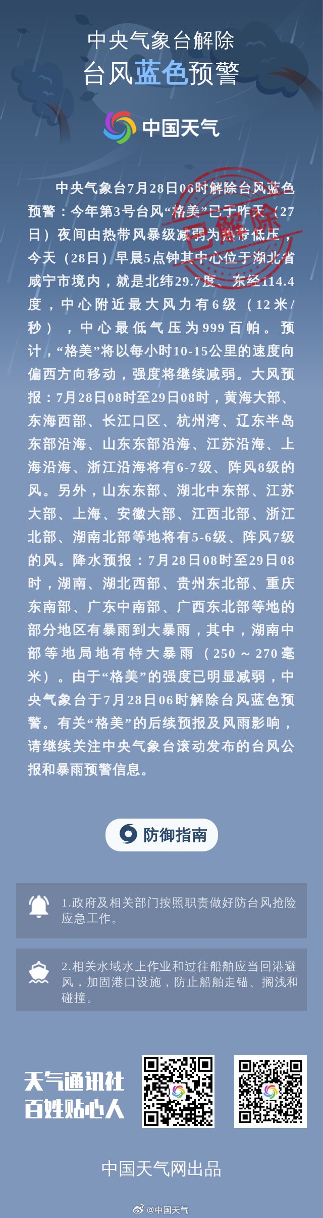 台风“格美”减弱,中央气象台解除台风蓝色预警