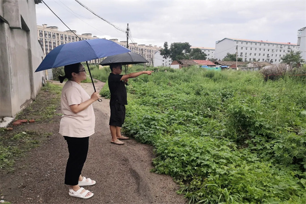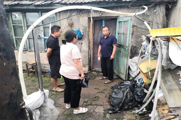 随后,社区工作人员对辖区内易积水区、地市低洼的居民家中进行实地走访排查,查看居民区内有无内涝区域,排水是否通畅,并提醒居民要注意安全,如发生紧急状况及时与社区取得联系。