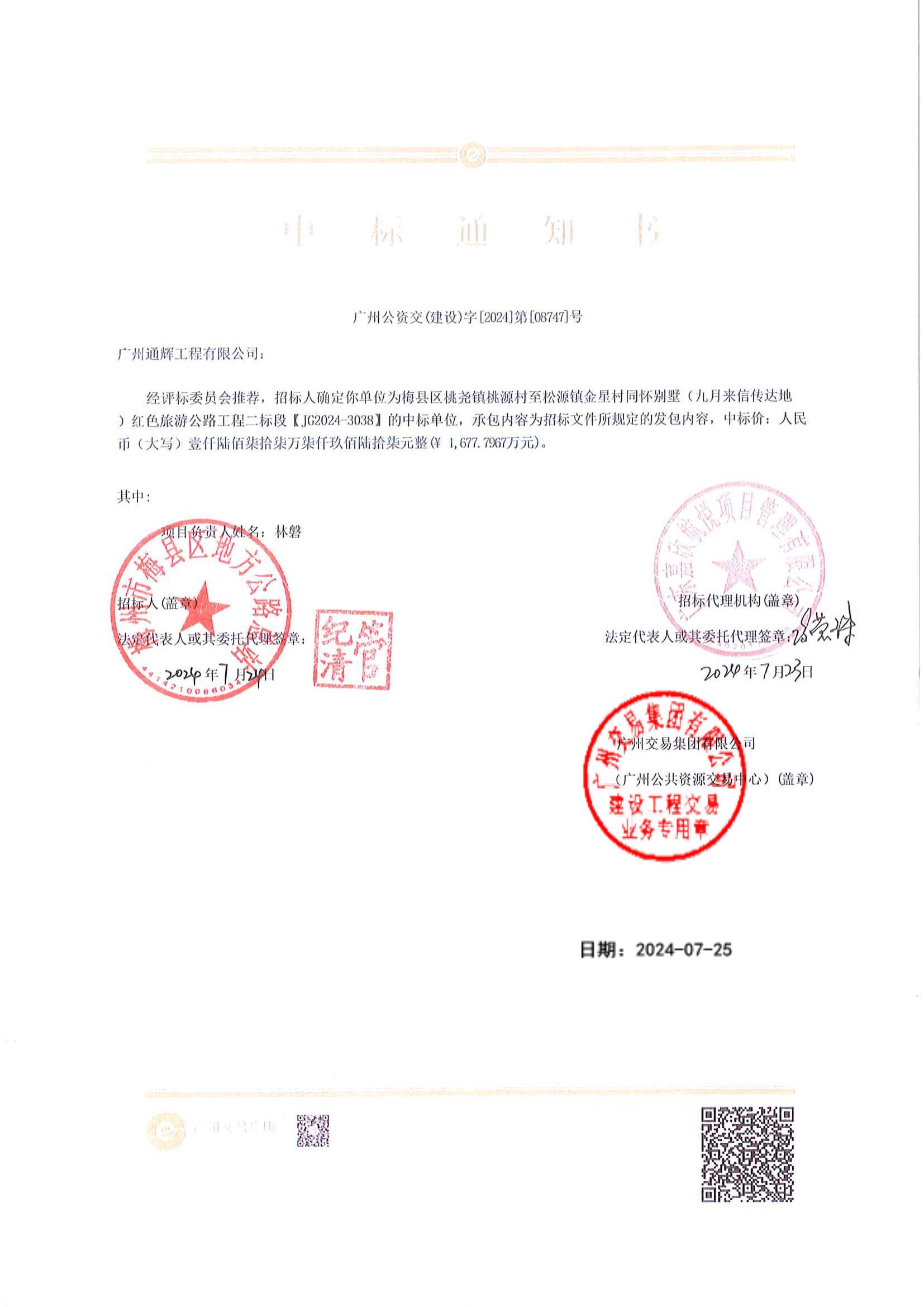 梅县区桃尧镇桃源村至松源镇金星村同怀别墅(九月来信传达地)红色旅游公路工程(二标段)施工招标结果公示