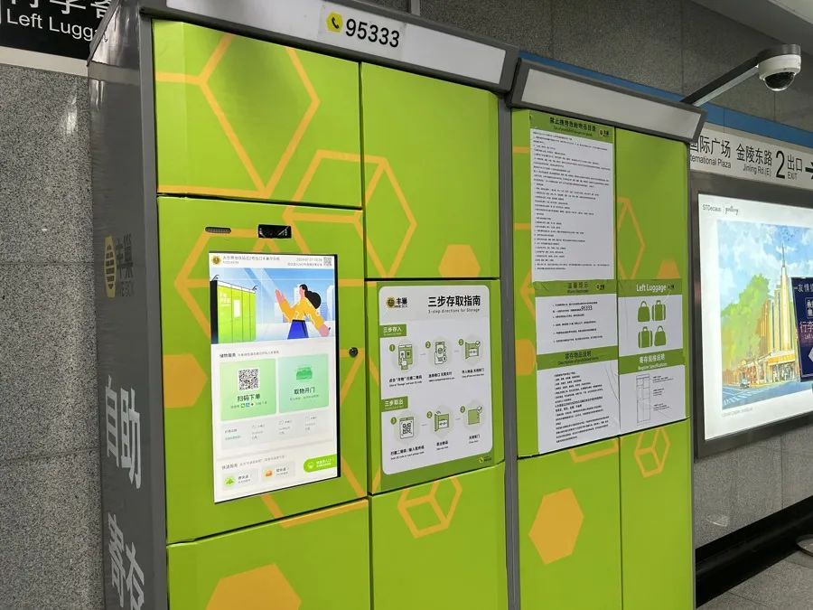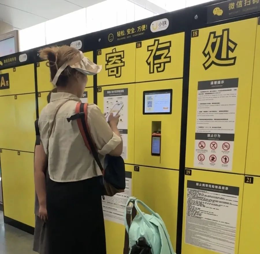 在上海地铁大世界站近2号口处,来自镇江的游客许女士,提着行李箱站在寄存柜前。手机扫描二维码,选择格口和寄存时间,点击下单。几秒后,柜门打开,她顺利将行李放了进去。
