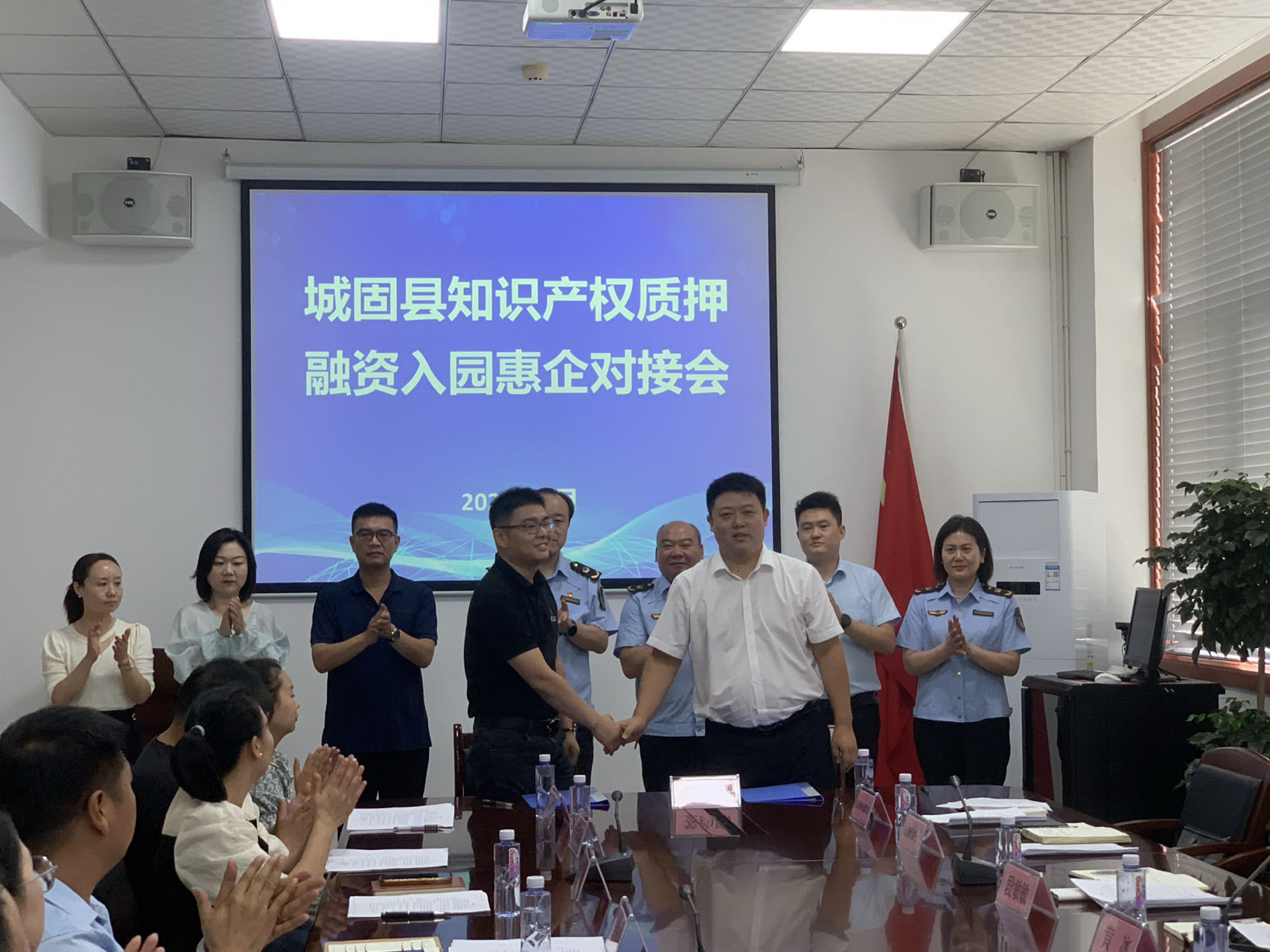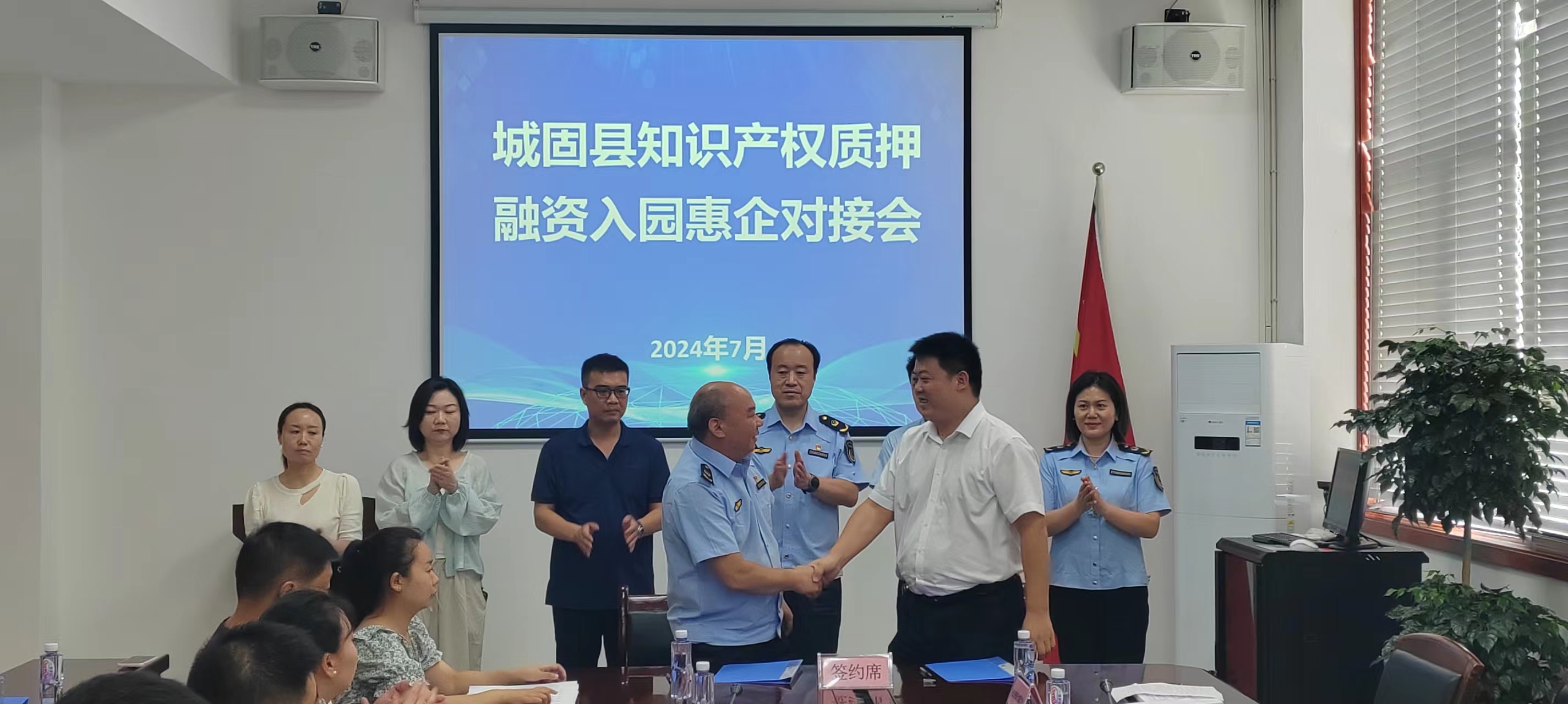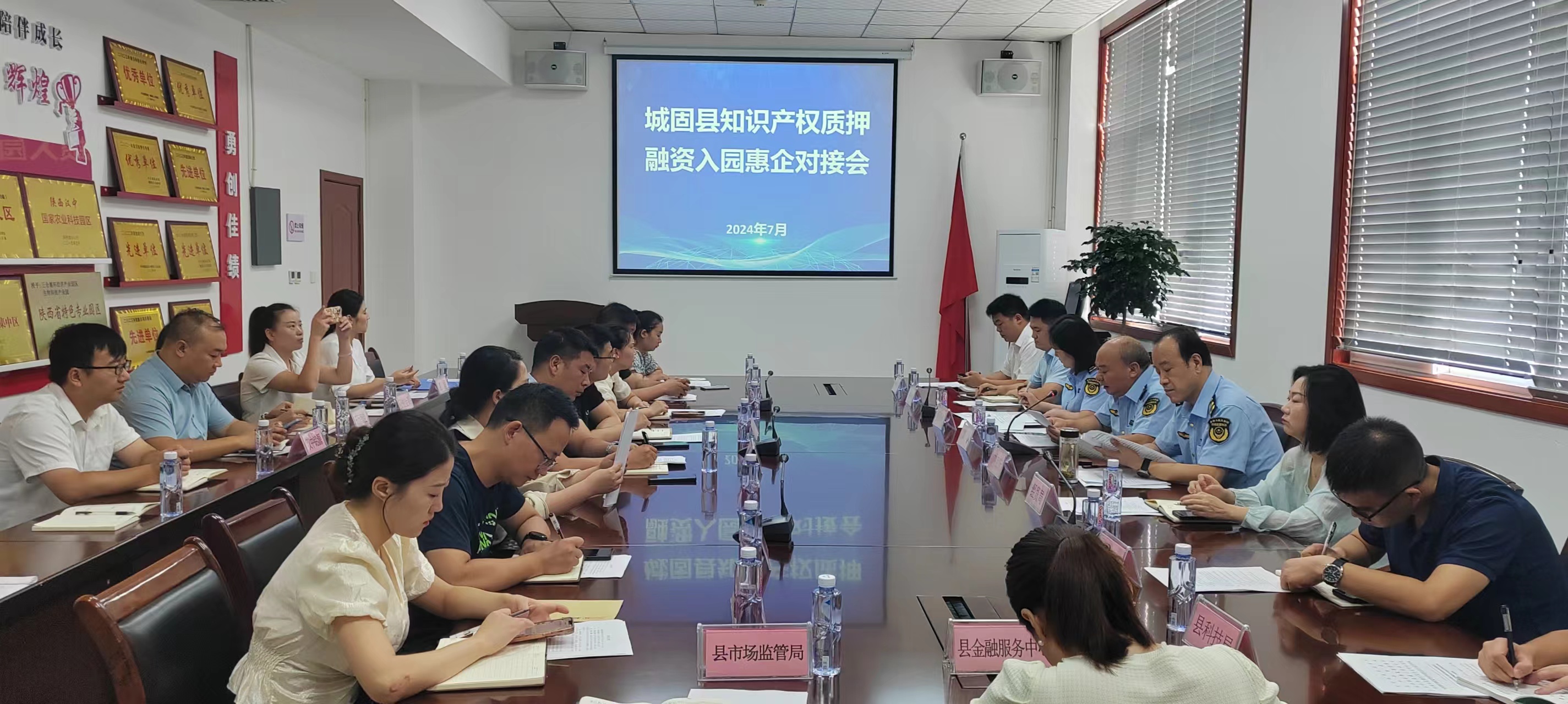 7月26日,城固县市场监督管理局、长安银行城固县支行、三合循环经济产业园区、汉中铭源知识产权运营服务有限公司联合在城固县三合循环经济产业园区召开了首次城固县知识产权质押融资银企对接会。汉中市市场监督管理局党组成员、副局长刘宝庆出席会议。