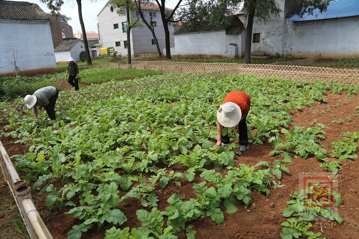 盛夏时节,绿意葱茏。在陈村村,精心打造的小菜园点缀在房前屋后,成为了村民们家门口的“微景观”。菜园内种植的一畦畦西红柿、萝卜、白菜等,密密匝匝、长势喜人,映照出村民们红火的日子。