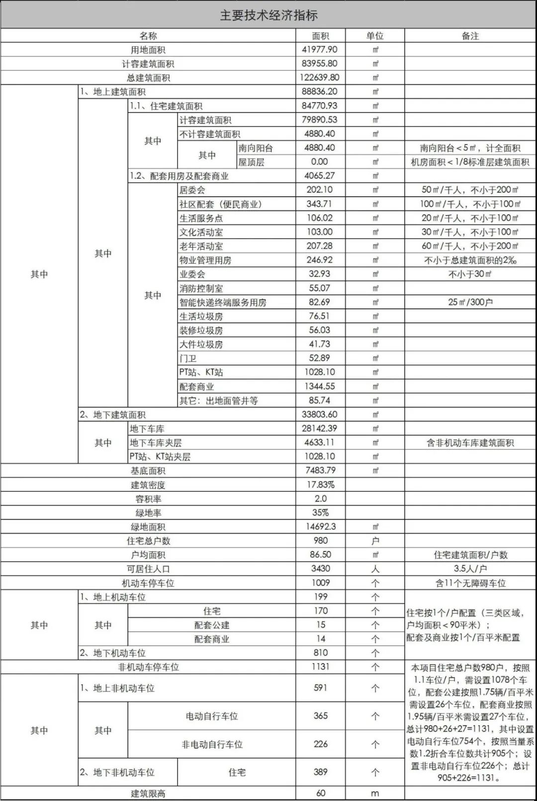 备注:经济技术指标以最终核发的建设工程规划许可证为准;绿化景观以绿化部门审批为准;停车位以交通部门审核为准;出入口以交警部门批准为准。