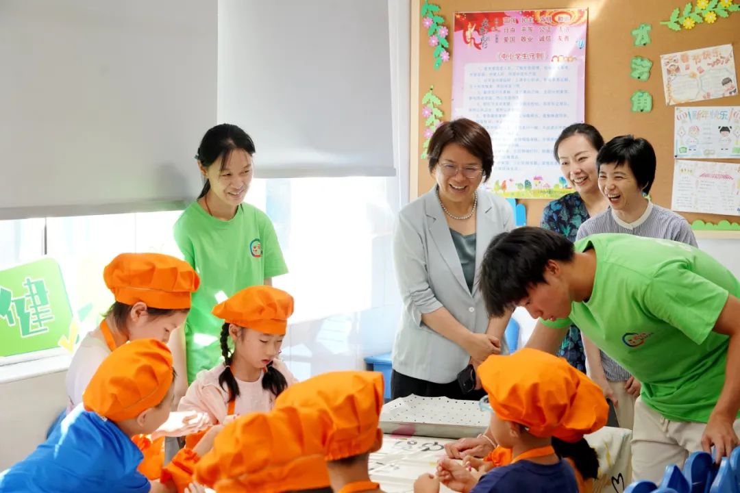 汤东英表示,希望孩子们在暑托班期间有所学、有所玩、有所思,度过一个难忘的暑假。随后,汤东英与大学生志愿者亲切交流,对志愿者们在高温天坚持到岗、积极投入志愿服务工作表示感谢。