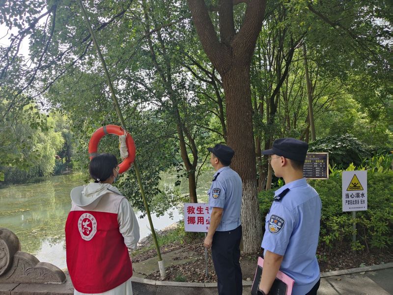 近期天气持续高温,在街道辖区江边、沟渠、湖泊等61处重点水域,由街道各村(社区)驻点干部、驻村工作队、包片单位、下沉党员、联户长等组成的“红马甲”队伍轮班值守,及时劝离未成年人,对新增的58处救援设施开展巡检,红十字水上救援服务队和安保巡逻队昼夜守护,确保险情发生时能够及时处置,齐心筑牢水上安全防线。