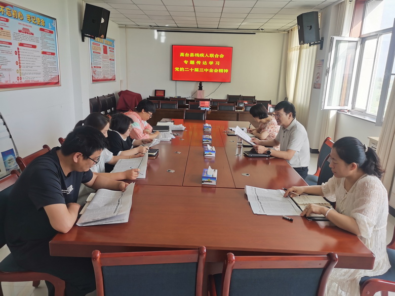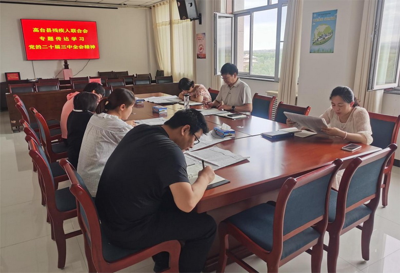 近日,高台县残联组织全体干部职工召开专题学习会议,传达学习党的二十届三中全会精神。会上,县残联主要负责人主持并领学了《中国共产党第二十届中央委员会第三次全体会议公报》《中共中央关于进一步全面深化改革、推进中国式现代化的决定》、习近平总书记关于《中共中央关于进一步全面深化改革、推进中国式现代化的决定》的说明。