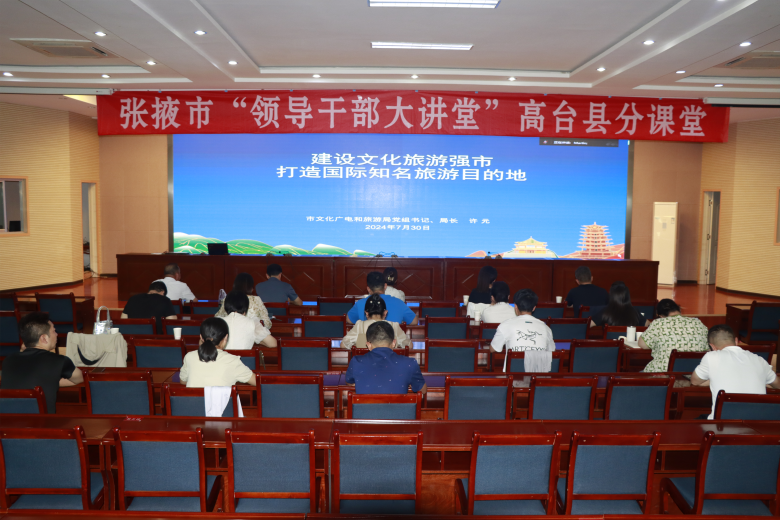 7月30日下午,张掖市第十一期“领导干部大讲堂”在市委党校举办。市文化广电和旅游局党组书记、局长许元作了题为《建设文化旅游强市,打造国际知名旅游目的地》的专题讲座。此次讲座在高台县委党校设分会场,全县文化广电和旅游系统部分领导干部参加。