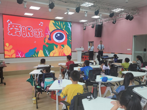 在文化宫暑托班,眼科专家志愿者为孩子们带来了预防近视的专业课程,志愿者深入浅出地讲解了近视的成因、发展过程以及预防和治疗的方法。为了增强课程的互动性和趣味性,志愿者还精心设计了“击鼓传花”眼科知识问答小游戏。在游戏中,孩子们积极参与,争相抢答,现场气氛热烈而欢快。通过游戏,孩子们不仅加深了对眼科知识的了解,还增强了自我保护意识,学会了如何科学用眼,预防近视。