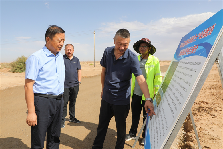 在八坝滩荒漠化治理示范点、胭脂堡规模化防沙治沙示范点,张龙听取项目规划、实施进度和项目谋划情况,实地查看苗木长势、植被覆盖状况。他强调,要深入贯彻习近平生态文明思想,树牢“绿水青山就是金山银山”的发展理念,聚焦打好“三北”工程攻坚战,尽心竭力抓好项目谋划,科学规划明年造林绿化工作,及早开展前期工作,坚持乔灌木结合、密植混交原则,持续推动防风林带向连片、纵深拓展。要树牢系统治理理念,强化项目用地、用水、用苗、基础设施配套等要素保障,加强苗木全周期管护,持续用力、久久为功,切实提高苗木成活率和植被覆盖率,真正把生态项目实施好、项目资金用在刀刃上,筑牢国家西部生态安全屏障,守好绿色生态家园。