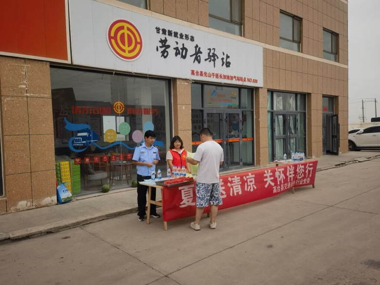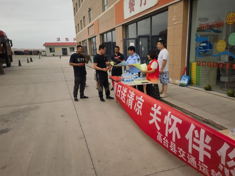 近日,高台县交通运输行业党委组织开展“夏日送清凉·?关怀伴您行”志愿服务活动,为奋战在交通运输一线的货车司机们送去丝丝凉意和深切关怀。