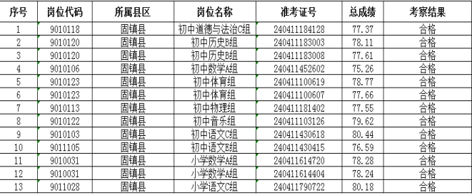 2024年度蚌埠市固镇县中小学教师(事业编制)公开招聘递补体检(第一次)考察结果