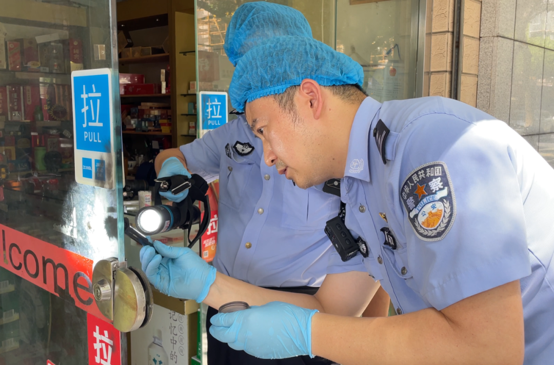 “店里的贵重物品被盗了?门锁有没有被撬?”近日,在嘉定梅园路上,一家超市夜间被盗,店主报警后,民警第一时间赶到现场了解情况,并封锁现场等待刑侦支队进一步勘察。不到10分钟,嘉定公安分局刑科所民警杜猛和同事便赶到现场,准备就绪后,开始寻找嫌疑人留下的蛛丝马迹。