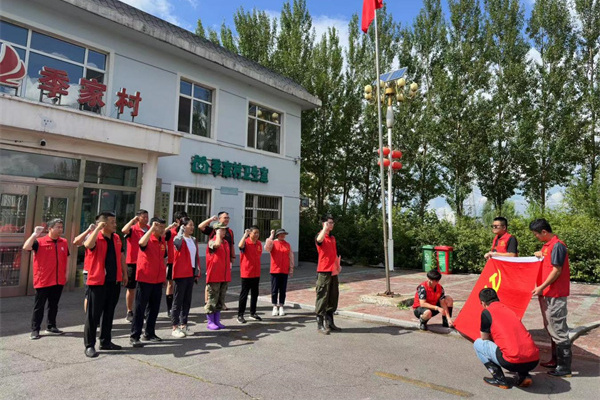 党员们在领誓人的带领下举起右臂共同宣誓,重温入党誓词,再一次用铮铮誓言诠释入党初心。